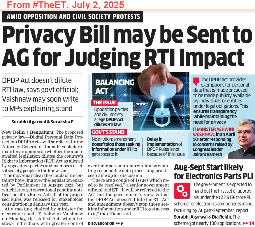 As far as RTI law is concerned, I can tell you from my personal experience that Government does not need any privacy. It needs only secrecy in certain matters like intelligence, defence, external affairs, etc. There is no point in narrowing down RTI law. Government departments are already uncooperative in providing the information demanded from them.